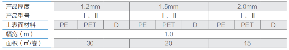 1.按上表面材料分为聚乙烯膜(PE)、聚酯膜(PET)、无膜双面自粘(D);